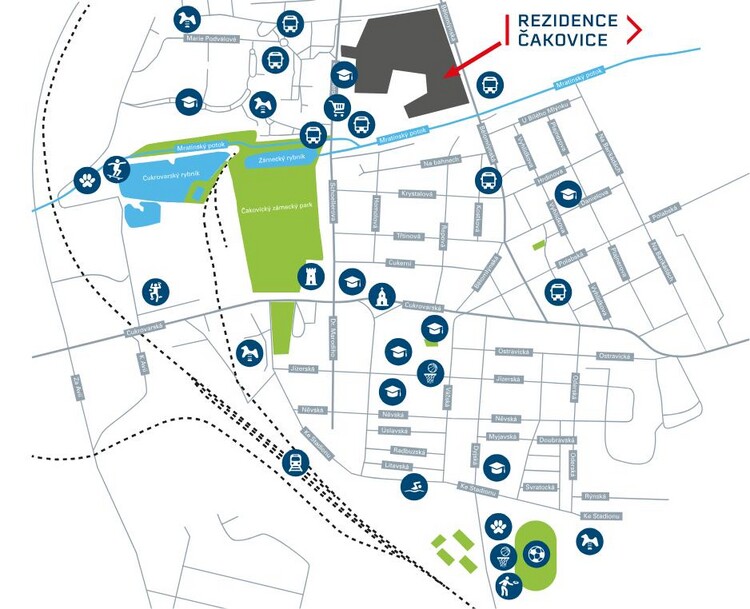 Thanks to its rich history, the attractive Čakovice locality offers complete civic amenities.