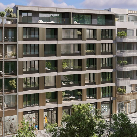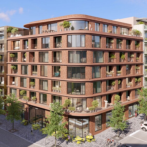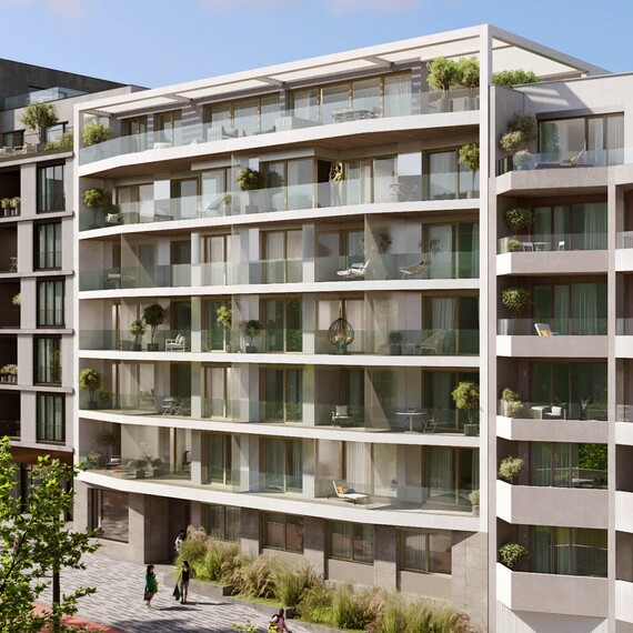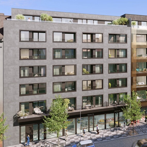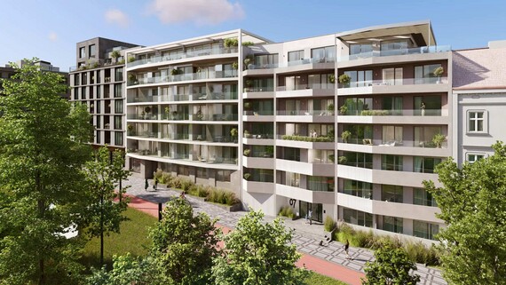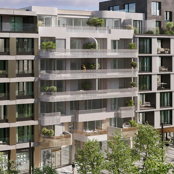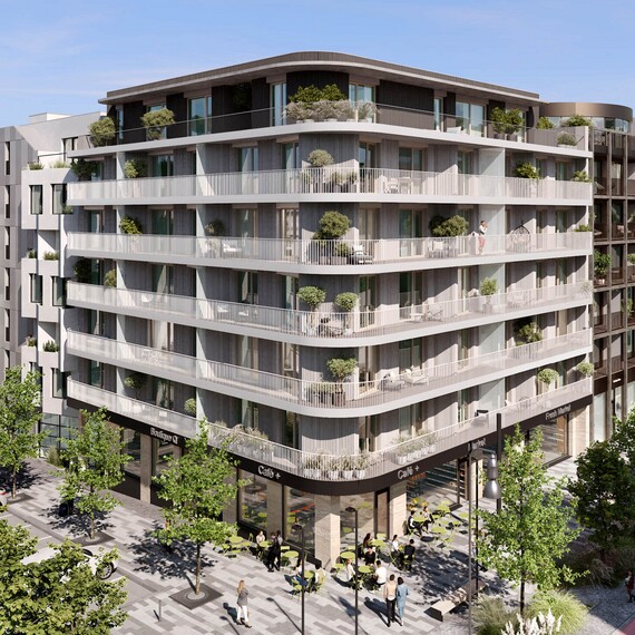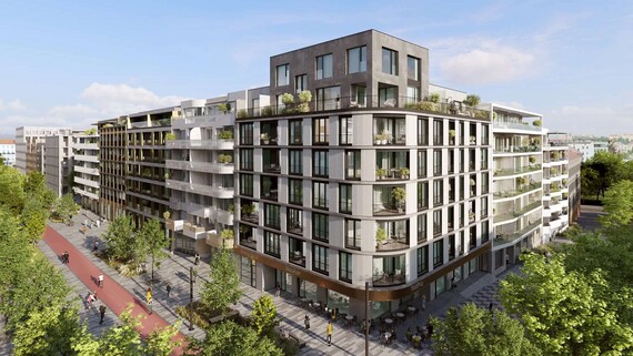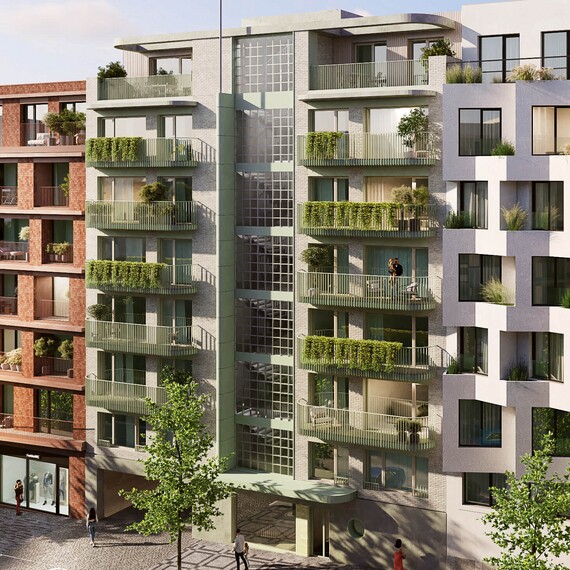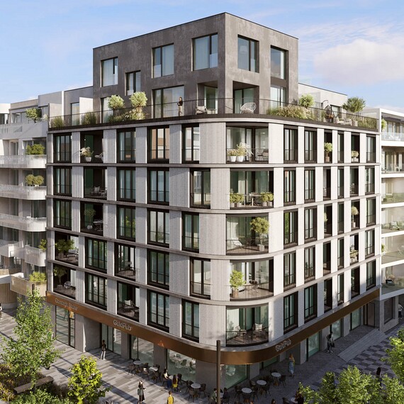 The large number of architectural teams involved in designing the buildings ultimately promises a diverse approach to the layout of the individual buildings and the facade designs. The designers gave each building an individual and original look. The result is a very diverse mosaic of architectural designs. This was also the case in the past when the city evolved organically. Different materials and architectural expressions are used for the individual facades. The vast majority of the apartments have balconies, loggias, terraces or front gardens, creating an intimate filter for the residents facing the street. All the buildings have recessed floor plans on the top floors, which feature luxury apartments with spacious terraces and beautiful views.