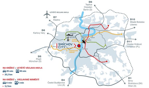 SM8 follows up on the already completed SM1/2 and SM3 residential blocks, and comprises a total of 12 residential buildings. It is part of the Smíchov City project, which aims to offer residents modern living with a high standard of finish, and is equipped with state-of-the-art technology. Its location in the city centre is an undeniable advantage. The exclusive apartments will be complemented by a functional urban ground level with shops and services. Trees will be planted in the streets to make the climate more pleasant and provide cool shade on hot days. The block is adjacent to Madeleine Albright Boulevard, designed as a pedestrian park, and the future Alice and Anna Masaryk Park.